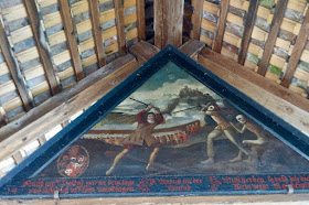 The Spreuer bridge is younger than the Kapellbrücke, but not by much. It was originally built in the 13th century, but rebuilt in the 16th after a flood. I thought memento mori was pretty much a medieval thing, but apparently it was still going strong in Switzerland into the 17th century. A 19th-century book on the bridge (my source for translations all of the painting captions below) explains that they originally planned "scenes with a merry meaning" but changed course after "the country was visited soon afterwards by heavy calamities, as war and pestilence". Just when you think you would need cheering up! 45 of the paintings still exist out of the original 67, making it the largest known Totentanz cycle in existence. I think I took photos of all of them!